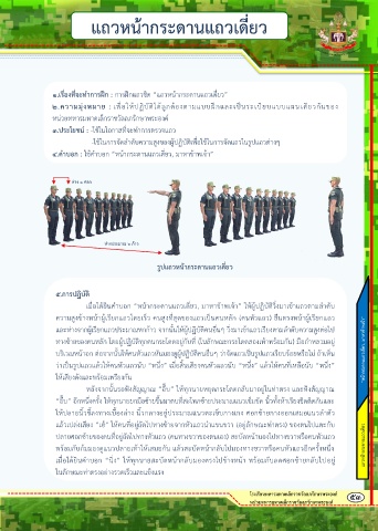 พร้อมกบกมมองดูแนวปลายเท้าให้เสมอกน แล้วสะบัดหน้ากลับไปมองทางขวาหรือคนหัวแถวอกครั้งหนึ่ง แถวหน้ากระดานแถวเดี่ยว