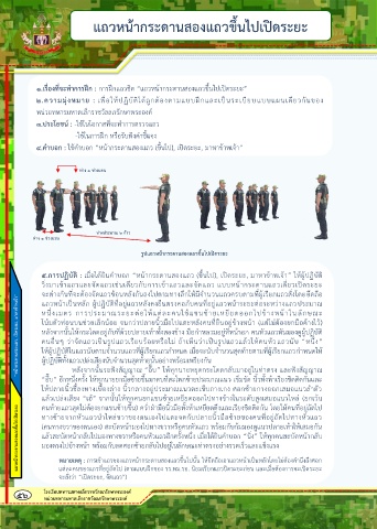 ๕.การปฏิบัติ : เมื่อได้ยินค าบอก “หน้ากระดานสองแถว (ขึ้นไป), เปิดระยะ, มาหาข้าพเจ้า” ให้ผู้ปฏิบัติ