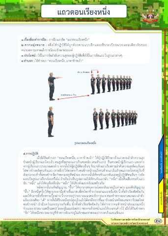 แถวเป็นรูปแถวเรียบร้อยหรือไม่ ถ้าเห็นว่าเป็นรูปแถวแล้วให้คนหัวแถวนับ “หนึ่ง” เมื่อสิ้นเสียงคนหัวแถว