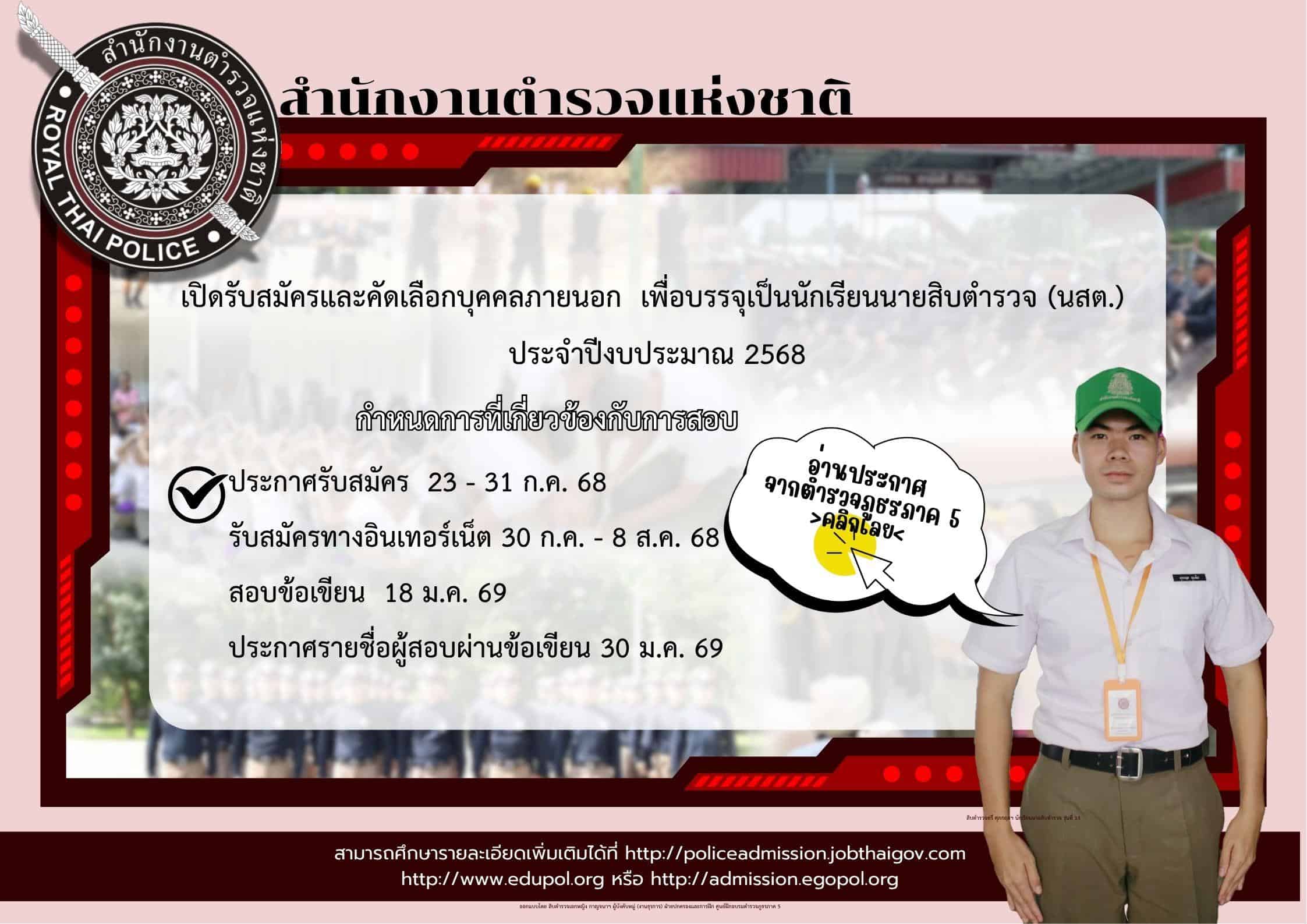 สำนักงานตำรวจแห่งชาติ เปิดรับสมัครและคัดเลือกบุคคลผู้มีวุฒิมัธยมศึกษาตอนปลาย (ม.6) หรือประกาศนัยบัตร