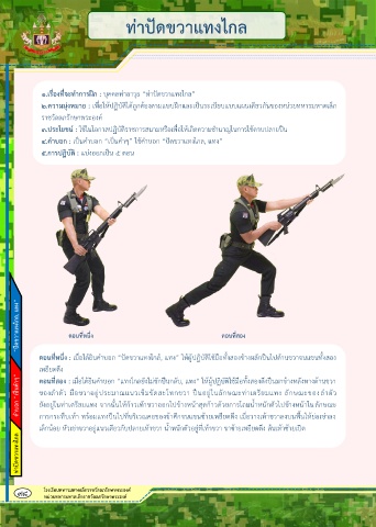 ตอนที่สอง : เมื่อได้ยินค าบอก “แทงไกลยังไม่ชักปืนกลับ, แทง” ให้ผู้ปฏิบัติใช้มือทั้งสองดึงปืนมาข้างหลังทางด้านขวา